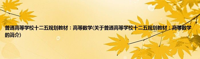 本文关于普通高等学校十二五规划教材:高等数学的简介就讲解完毕,希望对大家有所帮助。