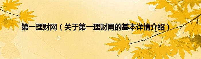 本文关于第一理财网的基本详情介绍就讲解完毕,希望对大家有所帮助。