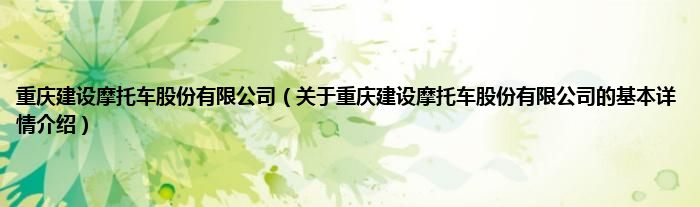 本文关于重庆建设摩托车股份有限公司的基本详情介绍就讲解完毕,希望对大家有所帮助。