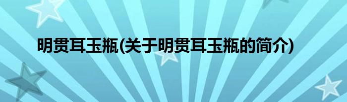 大家好,明贯耳玉瓶,关于明贯耳玉瓶的简介很多人还不知道,现在让我们一起来看看吧!