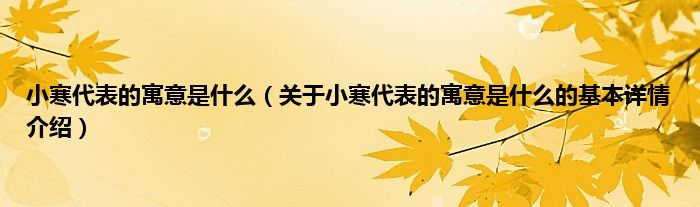 本文关于小寒代表的寓意是什么的基本详情介绍就讲解完毕,希望对大家有所帮助。