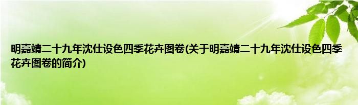 大家好,明嘉靖二十九年沈仕设色四季花卉图卷,关于明嘉靖二十九年沈仕设色四季花卉图卷的简介很多人还不知道,现在让我们一起来看看吧!