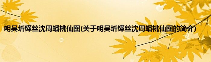 本文关于明吴圻缂丝沈周蟠桃仙图的简介就讲解完毕,希望对大家有所帮助。