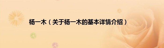 本文关于杨一木的基本详情介绍就讲解完毕,希望对大家有所帮助。