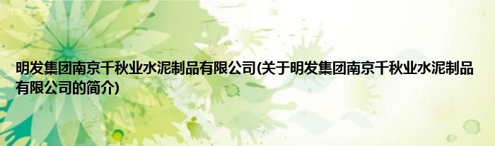 本文关于明发集团南京千秋业水泥制品有限公司的简介就讲解完毕,希望对大家有所帮助。