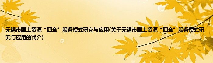 大家好,无锡市国土资源“四全”服务模式研究与应用,关于无锡市国土资源“四全”服务模式研究与应用的简介很多人还不知道,现在让我们一起来看看吧!
