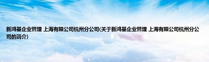 大家好,新鸿基企业管理 上海有限公司杭州分公司,关于新鸿基企业管理 上海有限公司杭州分公司的简介很多人还不知道,现在让我们一起来看看吧!