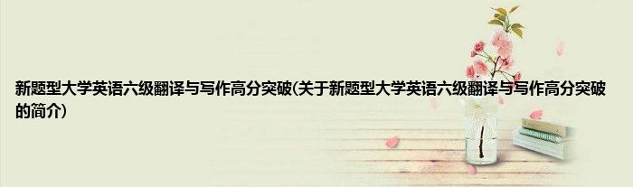 1、 《新题型大学英语六级翻译与写作高分突破》是一本2016年出版的图书。