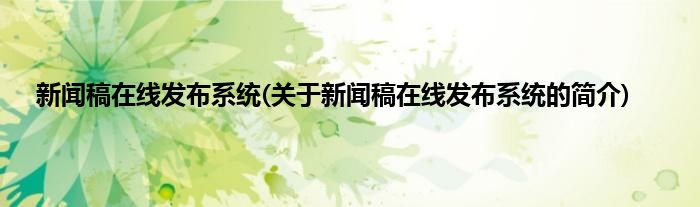 本文关于新闻稿在线发布系统的简介就讲解完毕,希望对大家有所帮助。