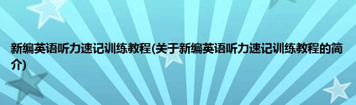 大家好,新编英语听力速记训练教程,关于新编英语听力速记训练教程的简介很多人还不知道,现在让我们一起来看看吧!