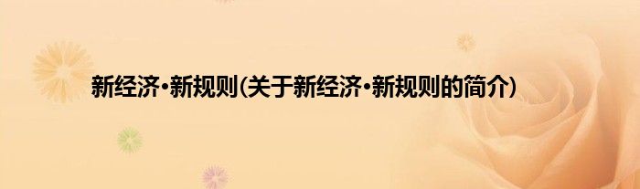 本文关于新经济·新规则的简介就讲解完毕,希望对大家有所帮助。