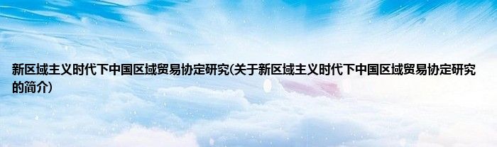 本文关于新区域主义时代下中国区域贸易协定研究的简介就讲解完毕,希望对大家有所帮助。