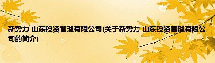 本文关于新势力 山东投资管理有限公司的简介就讲解完毕,希望对大家有所帮助。
