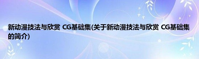 本文关于新动漫技法与欣赏。CG基础集的简介就讲解完毕,希望对大家有所帮助。