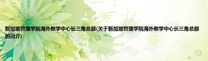 大家好,新加坡管理学院海外教学中心长三角总部,关于新加坡管理学院海外教学中心长三角总部的简介很多人还不知道,现在让我们一起来看看吧!