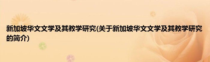 本文关于新加坡华文文学及其教学研究的简介就讲解完毕,希望对大家有所帮助。