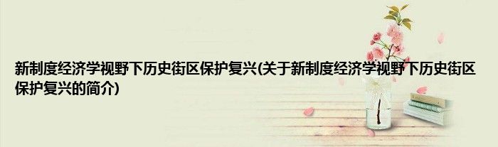 大家好,新制度经济学视野下历史街区保护复兴,关于新制度经济学视野下历史街区保护复兴的简介很多人还不知道,现在让我们一起来看看吧!