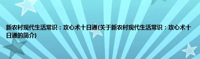 本文关于新农村现代生活常识:攻心术十日通的简介就讲解完毕,希望对大家有所帮助。
