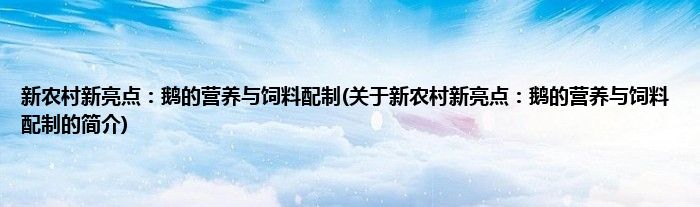 本文关于新农村新亮点:鹅的营养与饲料配制的简介就讲解完毕,希望对大家有所帮助。