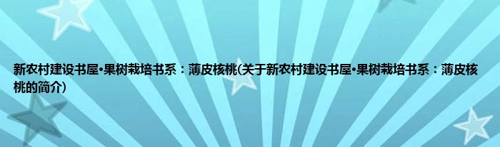 本文关于新农村建设书屋·果树栽培书系:薄皮核桃的简介就讲解完毕,希望对大家有所帮助。