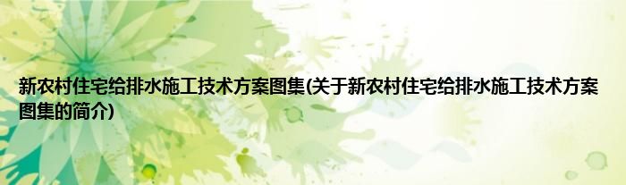 大家好,新农村住宅给排水施工技术方案图集,关于新农村住宅给排水施工技术方案图集的简介很多人还不知道,现在让我们一起来看看吧!