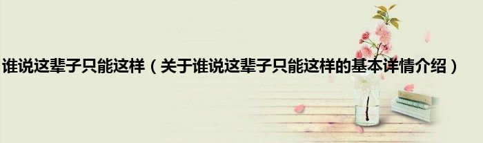 本文关于谁说这辈子只能这样的基本详情介绍就讲解完毕,希望对大家有所帮助。