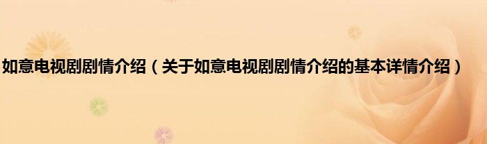 本文关于如意电视剧剧情介绍的基本详情介绍就讲解完毕,希望对大家有所帮助。