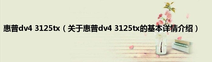 本文关于惠普dv4 3125tx的基本详情介绍就讲解完毕,希望对大家有所帮助。