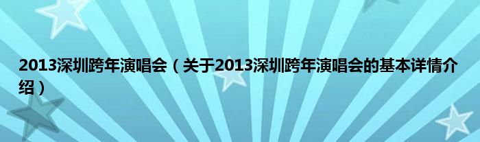 本文关于2013深圳跨年演唱会的基本详情介绍就讲解完毕,希望对大家有所帮助。
