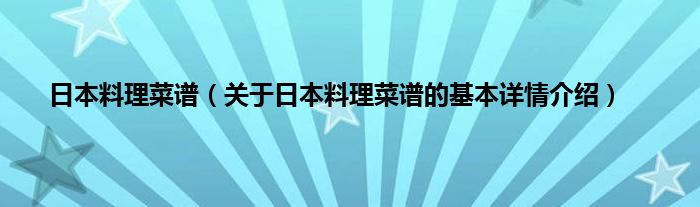 本文关于日本料理菜谱的基本详情介绍就讲解完毕,希望对大家有所帮助。
