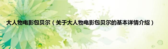 本文关于大人物电影包贝尔的基本详情介绍就讲解完毕,希望对大家有所帮助。
