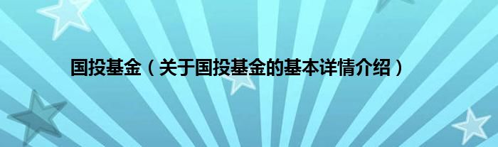 本文关于国投基金的基本详情介绍就讲解完毕,希望对大家有所帮助。