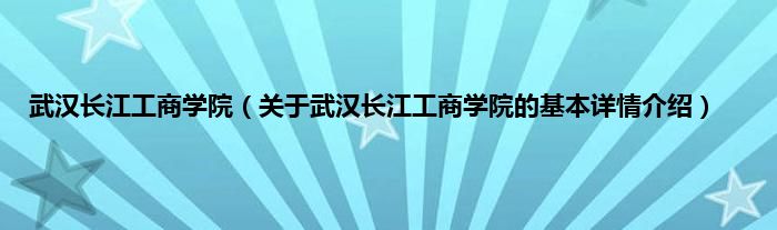 本文关于武汉长江工商学院的基本详情介绍就讲解完毕,希望对大家有所帮助。