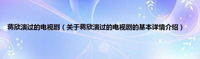 本文关于蒋欣演过的电视剧的基本详情介绍就讲解完毕,希望对大家有所帮助。