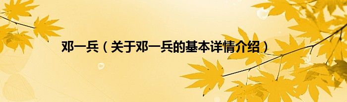 本文关于邓一兵的基本详情介绍就讲解完毕,希望对大家有所帮助。
