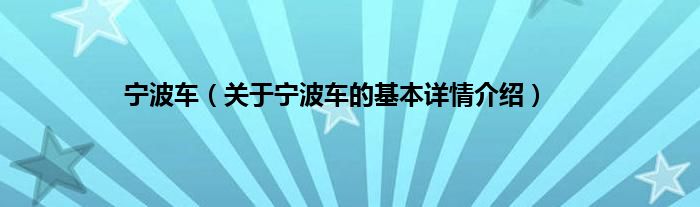 本文关于宁波车的基本详情介绍就讲解完毕,希望对大家有所帮助。