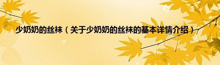 本文关于少奶奶的丝袜的基本详情介绍就讲解完毕,希望对大家有所帮助。