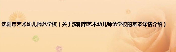 本文关于沈阳市艺术幼儿师范学校的基本详情介绍就讲解完毕,希望对大家有所帮助。