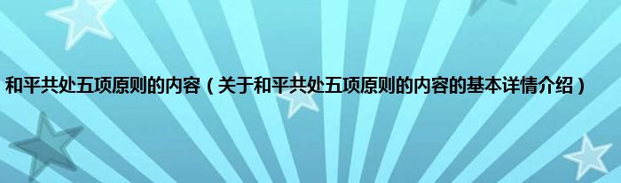 本文关于和平共处五项原则的内容的基本详情介绍就讲解完毕,希望对大家有所帮助。
