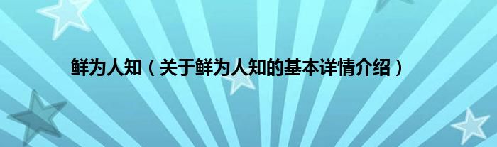 本文关于鲜为人知的基本详情介绍就讲解完毕,希望对大家有所帮助。