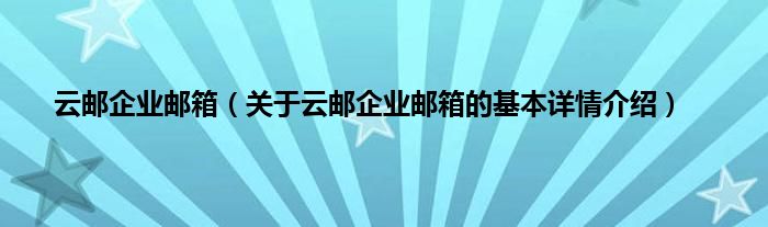 本文关于云邮企业邮箱的基本详情介绍就讲解完毕,希望对大家有所帮助。