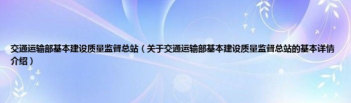 本文关于交通运输部基本建设质量监督总站的基本详情介绍就讲解完毕,希望对大家有所帮助。