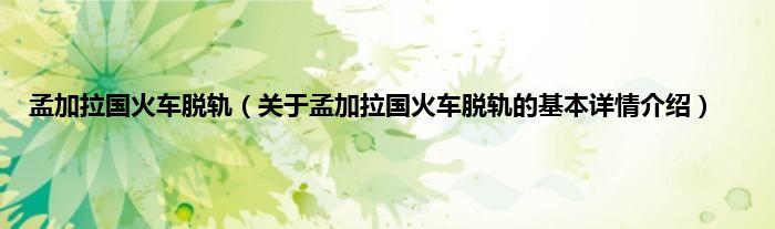 本文关于孟加拉国火车脱轨的基本详情介绍就讲解完毕,希望对大家有所帮助。
