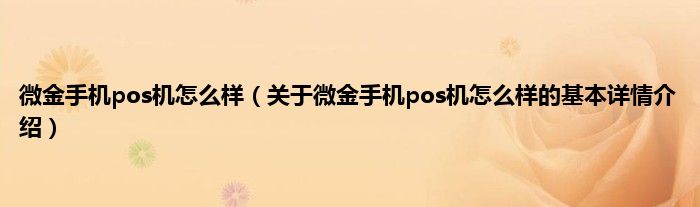 本文关于微金手机pos机怎么样的基本详情介绍就讲解完毕,希望对大家有所帮助。