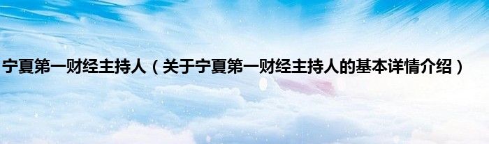 本文关于宁夏第一财经主持人的基本详情介绍就讲解完毕,希望对大家有所帮助。