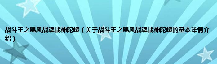 本文关于战斗王之飓风战魂战神陀螺的基本详情介绍就讲解完毕,希望对大家有所帮助。