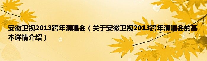本文关于安徽卫视2013跨年演唱会的基本详情介绍就讲解完毕,希望对大家有所帮助。