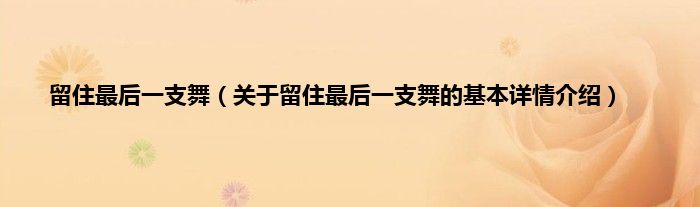 本文关于留住最后一支舞的基本详情介绍就讲解完毕,希望对大家有所帮助。