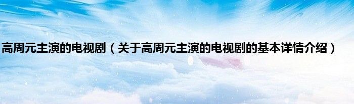 本文关于高周元主演的电视剧的基本详情介绍就讲解完毕,希望对大家有所帮助。
