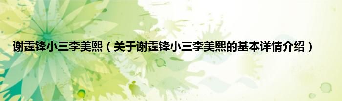本文关于谢霆锋小三李美熙的基本详情介绍就讲解完毕,希望对大家有所帮助。